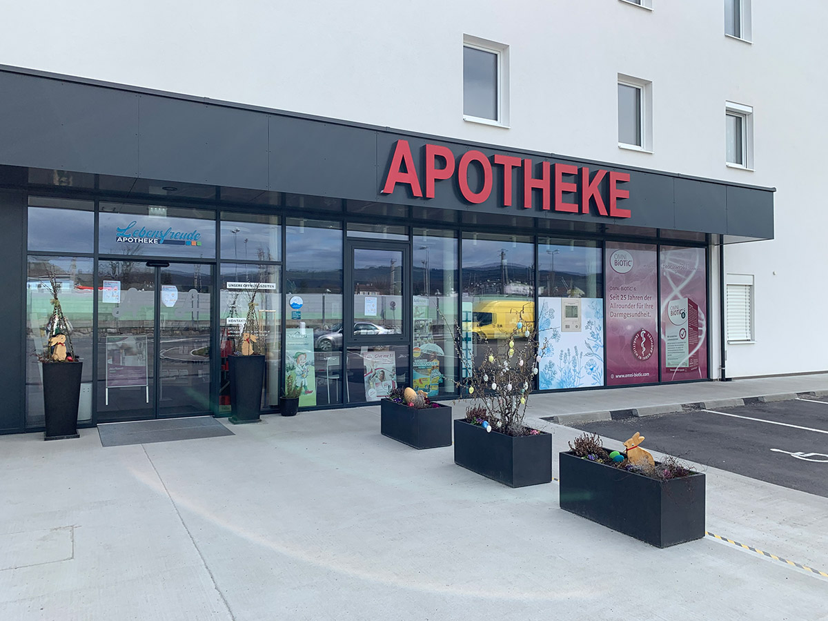 Die angesiedelte Apotheke schafft eine fussläufig erreichbare Nahversorgung, das Cafe rundet das Anbot perfekt ab.